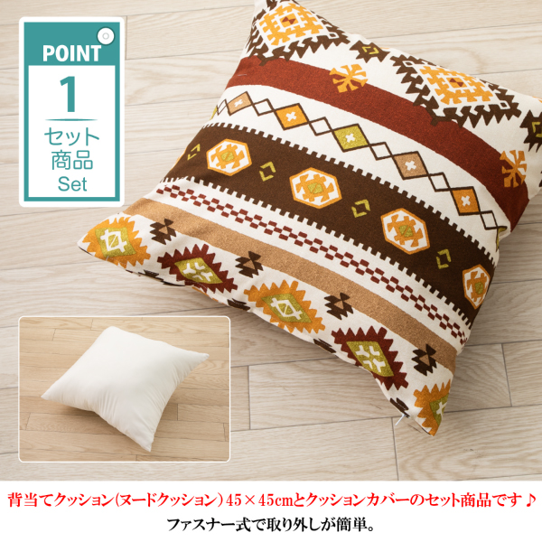 背当てクッション (ヌードクッション)45 × 45 cmと、クッションカバーのセット商品です♪