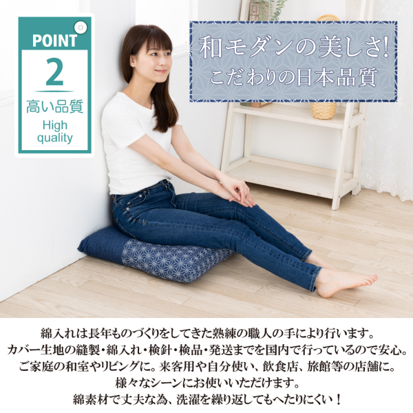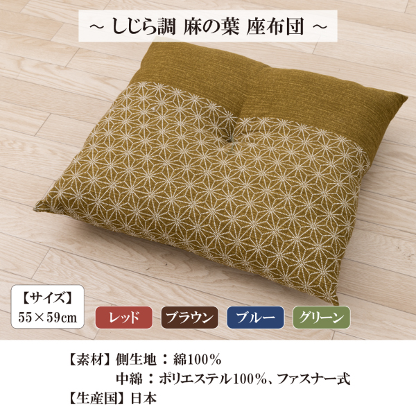 【サイズ】55×59cm【素材】側生地:綿100%、中綿:ポリエステル100%、ファスナー式【生産国】日本