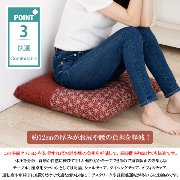 テーブル、座卓用クッションとしてはもちろん、シェルチェア、ダイニングチェア