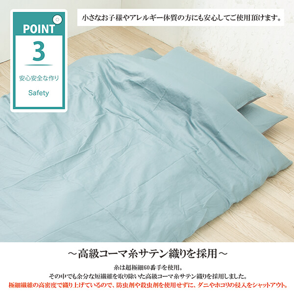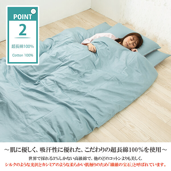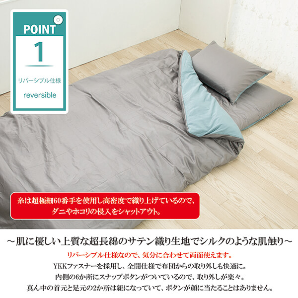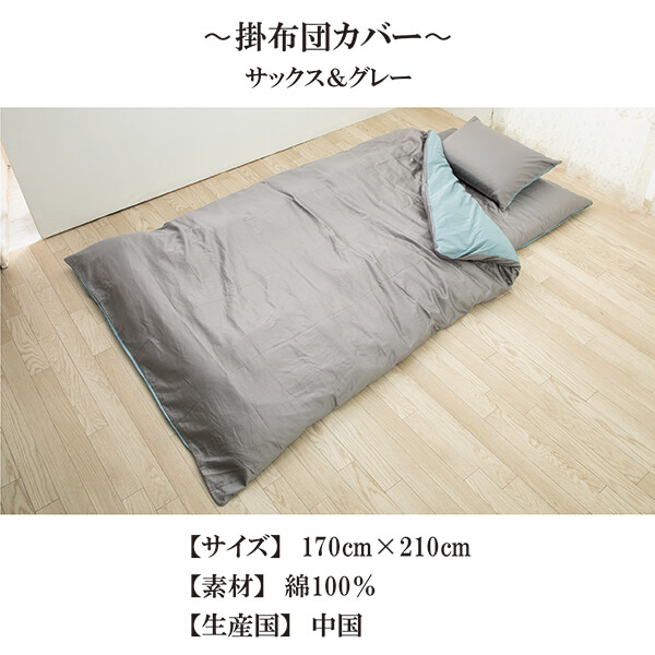 • 掛け布団カバー 超長綿 綿 サテン織り セミダブル カバー 綿100 % 高密度生地 170 × 210 cm リバーシブル サックス&グレー